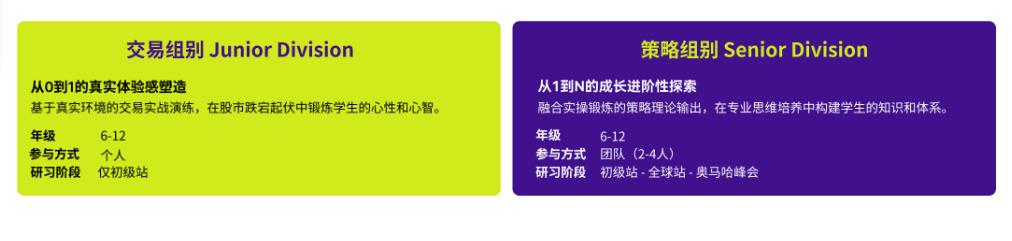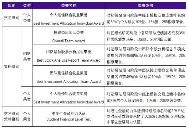 参赛内容:线上模拟交易和金融能力测试。重点在于股票交易实操,旨在激发学生对投资的兴趣。