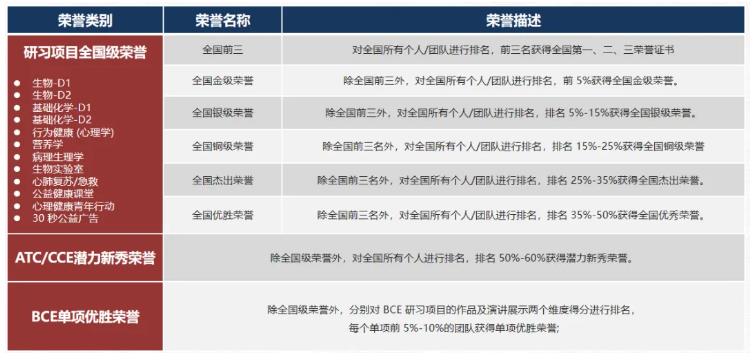 CCE挑战强调拓展更加专业的学术知识,不同于ATC挑战与校内知识兼容,CCE注重与大学预选课程的衔接,帮助在生物、医学、健康、化学领域有专业意向的同学提前了解相关学科知识,深度挖掘专业兴趣,拓宽知识储备,为大学课业提前打好基础!挑战分设5个具体项目: